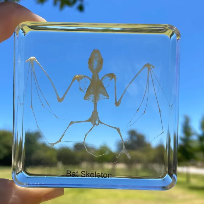 Children also find bats fascinating. They can learn a lot from exploring animal skeletons and comparing them to our own. This skeleton is perfectly preserved and allows children to explore and study the intricate parts. They can count bones, make observational drawings and discover how bats move.