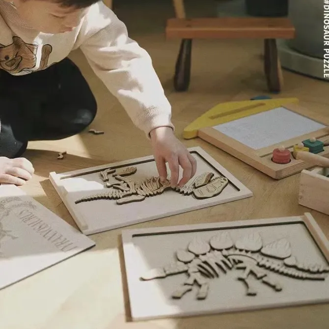 Unleash the inner paleontologist with the Stegosarus based Dinosaur Fossil Puzzle! Children will be immediately intrigued with the hunt for skeletal pieces within the box, and can solve the included puzzle by finding the correct position for each.