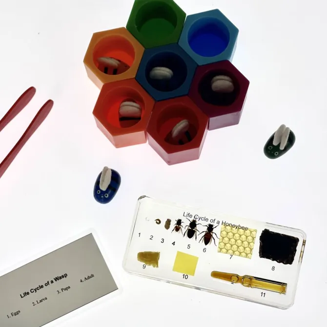 Honey bees are fascinating. They play an important role in sustaining the environment and are essential for the survival of many of our plant species. Our specialised resin lifecycle of a bee is an exceptional resource to inspire children to learn about the wonders of nature. Thrill children with interesting facts and engage them in learning about lifecycles and honey production.