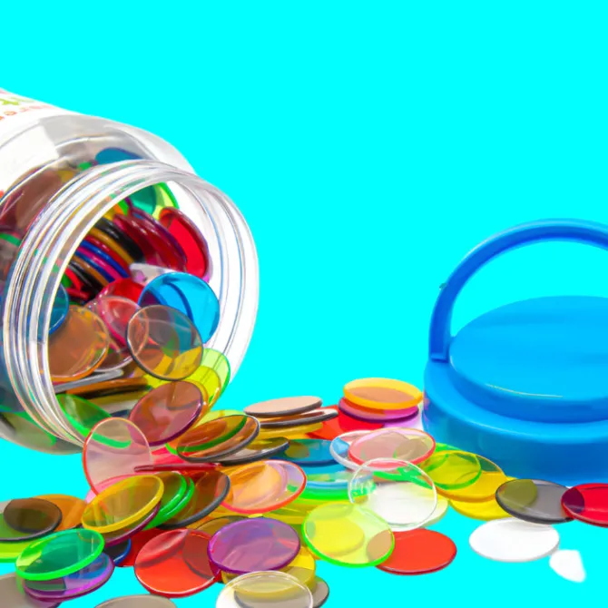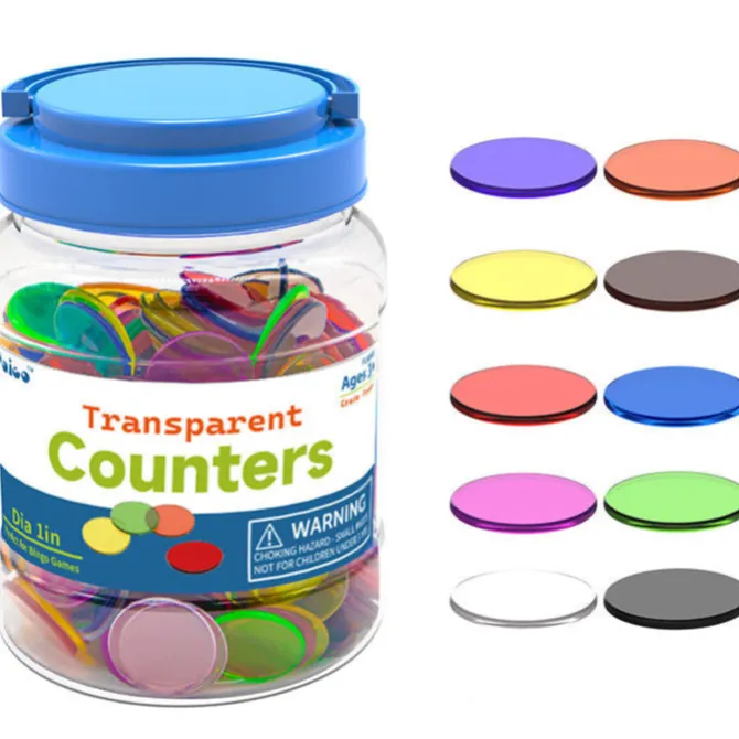 The Translucent Counters are clear and round in shape consisting of 300 counters in a mix of 10 different colours. These are a wonderful STEAM product as children can play with the counters on a light panel or box, also perfect for learning basic math concepts. Children can advance their fine motor skills while learning sorting, counting, classifying, colours and patterning through active play.