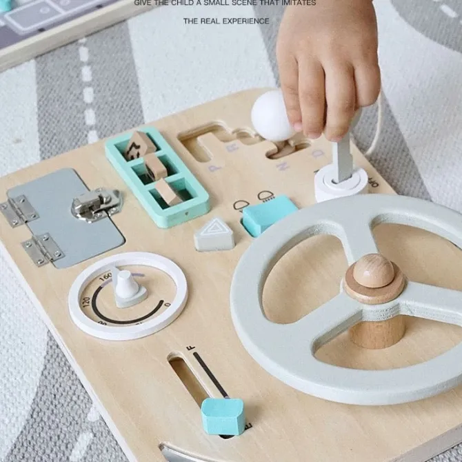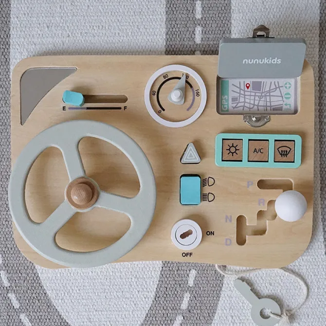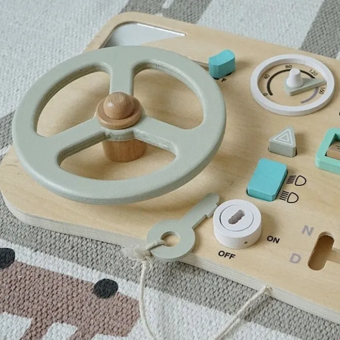 Get Ready Little Drivers with this gorgeous wooden activity board. Race into action as you take the wheel and head off on adventures.