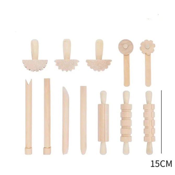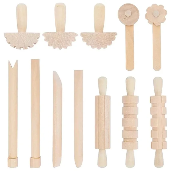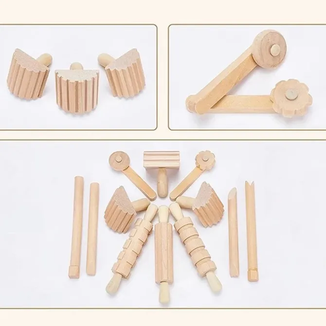 Enhance play time with playdoh with this wide variety of wooden rolling pins! Covering a comprehensive array of fine motor skills to use, this is an excellent set of teaching tools requiring pressing, pushing, twisting and precision movements to achieve satisfying results. Exercises creativity and builds understanding of different methods of actuation