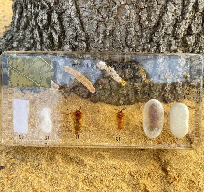 It is also an excellent resource to promote scientific inquiry and investigation. The silkworm is the larva or caterpillar of a silk moth. It is the primary producer of silk and can no longer be found in the wild, another reason why this resin lifecycle is an important resource to allow children to explore.