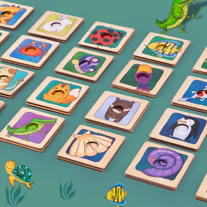 Recognise patterns, colours and shapes, exercise problem solving and cognitive function while expanding childrens’ vocabulary for colours, animals and identifying features.