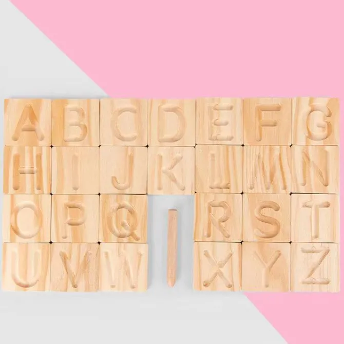 Beautiful alphabet trays set for literacy development.This product is designed for children to have fun with writing and spelling. There are many ways that you can use this product, from filling it with sand for writing and tracing the letters, to prompting words for spelling. The board can also be as a filling board with colour sand or play dough as a fun way to learn the alphabet. Made out of Rubberwood, finished with natural child safe oils.