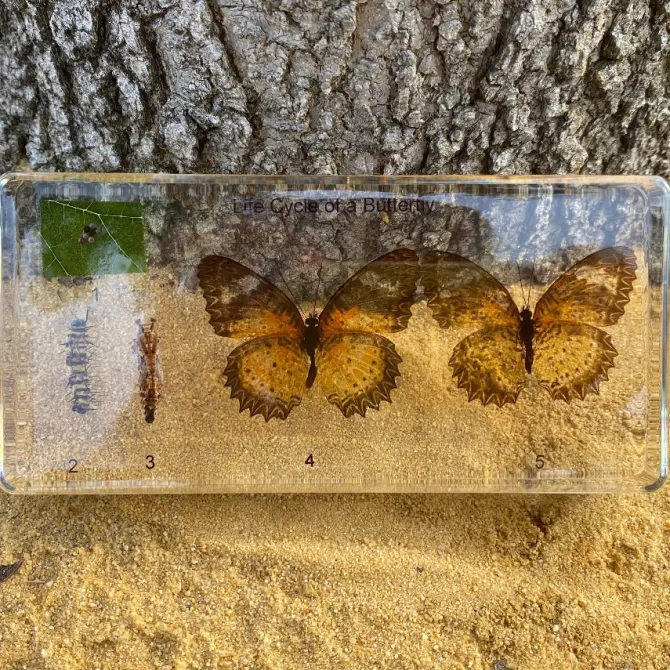 This beautifully crafted resin block contains the stages of egg, larva, pupa and butterfly. Children can observe each stage in a way that they never would be able to without this resin block. They will be able to discover minute details and discover the body parts.