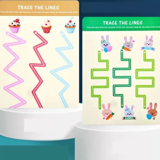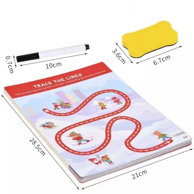 Super fun and engaging, the Draw & Wipe Drawing Line Set is a reusable whiteboard style set of line drawing activity sheets to help train early learners in pen control, fine motor skills and hand eye coordination, while also teaching shapes, patterns, animals, colours and more with the cute and attractive reusable sheets!
