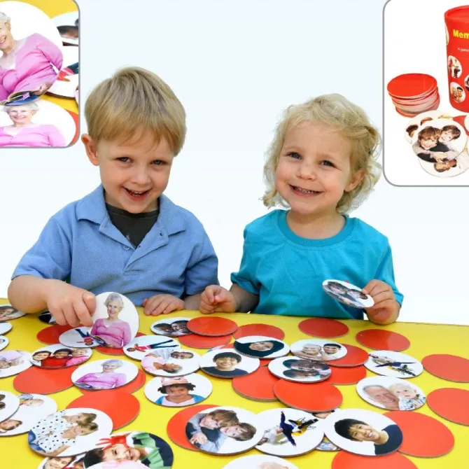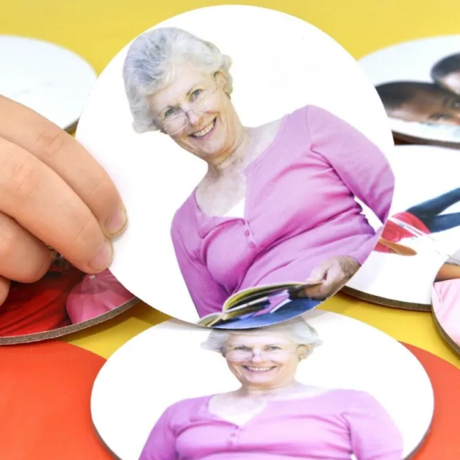 These lovely family matching cards are a great resource for familiarising children with key vocabulary and the names of different family members. The set comprises 56 discs depicting 28 different family combinations. Children can play a simple game of snap by turning all the cards face down on the table and turning 2 cards over at a time to find a pair, play memory games, sort them or even find familiar family members.