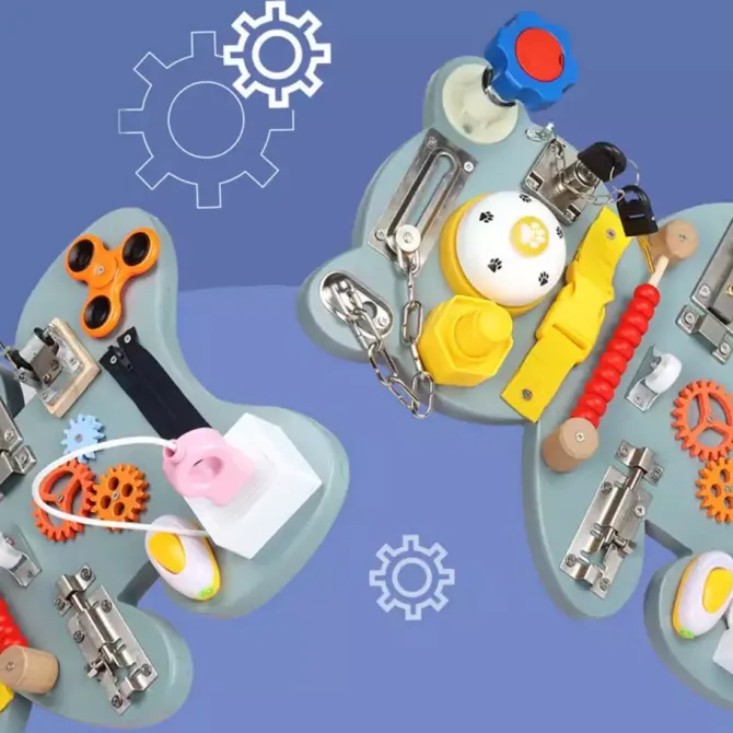 Help train your children to interact with their surroundings, their home and the world with important skills for taps, doors, locks, straps, switches… the list goes on!