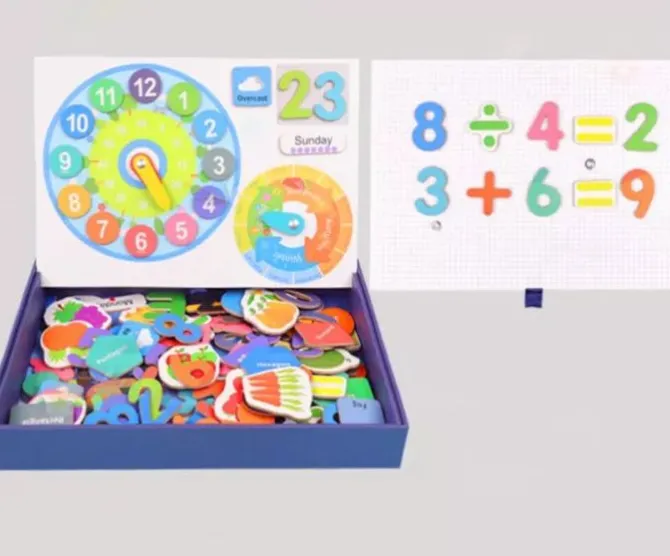 Magentic Learning Box- Letters: 70* Number puzzle, 12*shape puzzle, 7* Date puzzle, 24*symbol puzzle,7*weather puzzle,12* fruit puzzle
