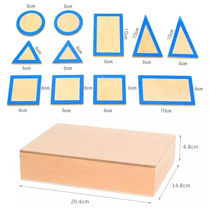 The included wooden box keeps the shape bases organised, while the three stands are for supporting the round shapes.
