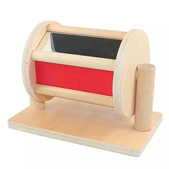 This spinning drum is fascinating to toddlers learning colours and enjoying the experience of the moving reflection in the mirror panel. Made from sturdy beech wood and solid in design, this toy is a durable addition to any play area.