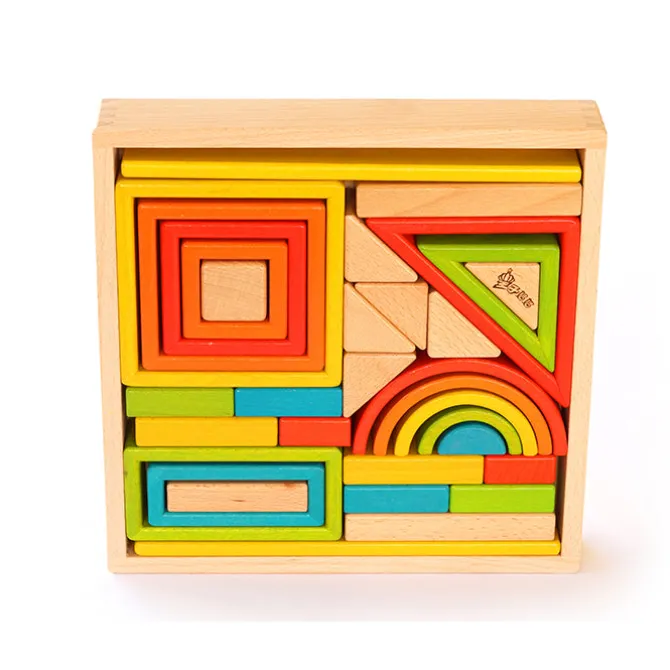 This faboulouse wooden block set comes with colourful rainbow blocks that have been lovingly crafted from from sustainably sourced Beech Wood. They have soft touch smooth sanded edges perfect for little hands to make wonderful creations. Includes a puzzle card that converts the carry tray into a puzzle.