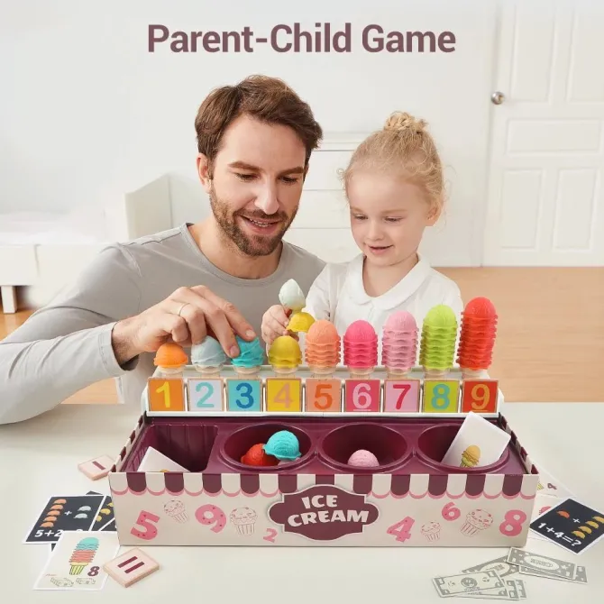 EEPLICATES THE ENTIRE EXPERIENCE: Our kids ice cream play set with toppings also includes a reusable menu, so children can take orders, pay with play money and serve up deliciousness, just like their favorite ice cream shop.