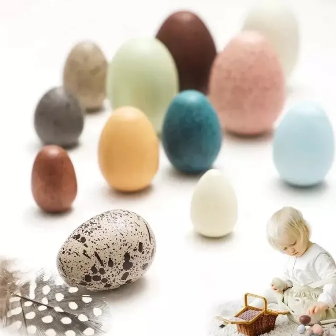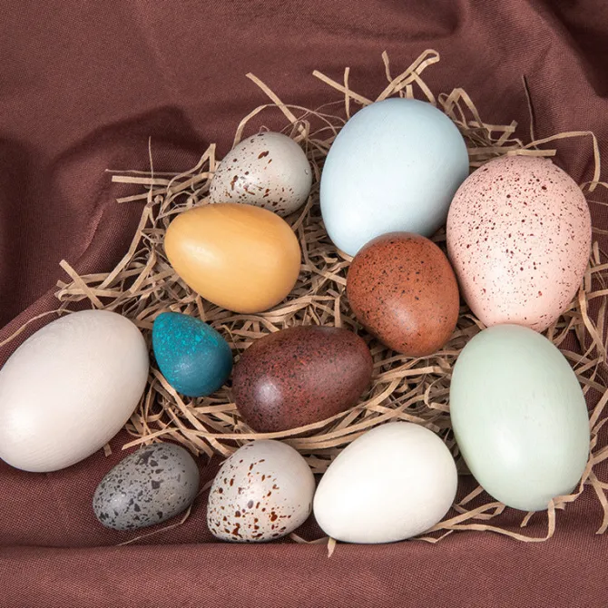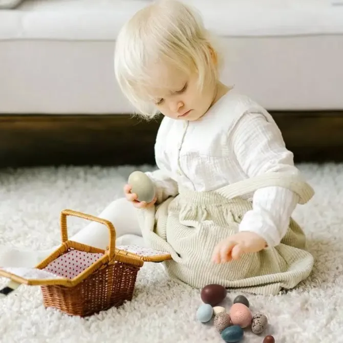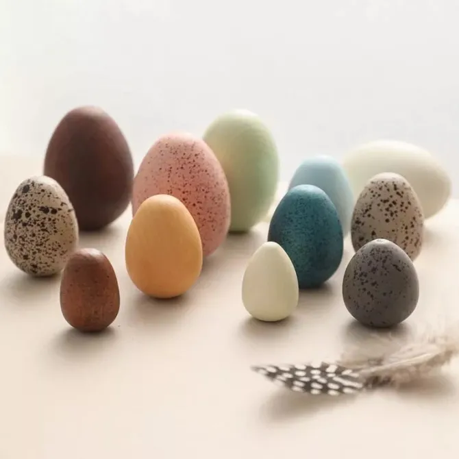 Children can develop descriptive speech as they practice words to differentiate one egg from the others and they are perfect for making beautiful displays and play-room area decorations. Also useful as a part of larger open-ended wooden play sets.