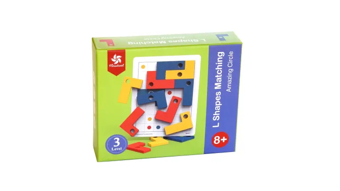 This premium version of the Logical puzzle set includes L-shaped blocks with added complexity of shapes to match within the block to deeply train your child’s growing mind!