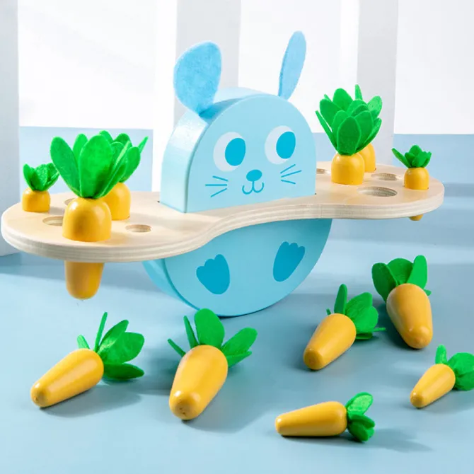 Fine motor skills are refined and honed in order to place the carrots in the toy as it sways, and the game naturally stimulates cognitive growth and teaches children about weight, size and balance.