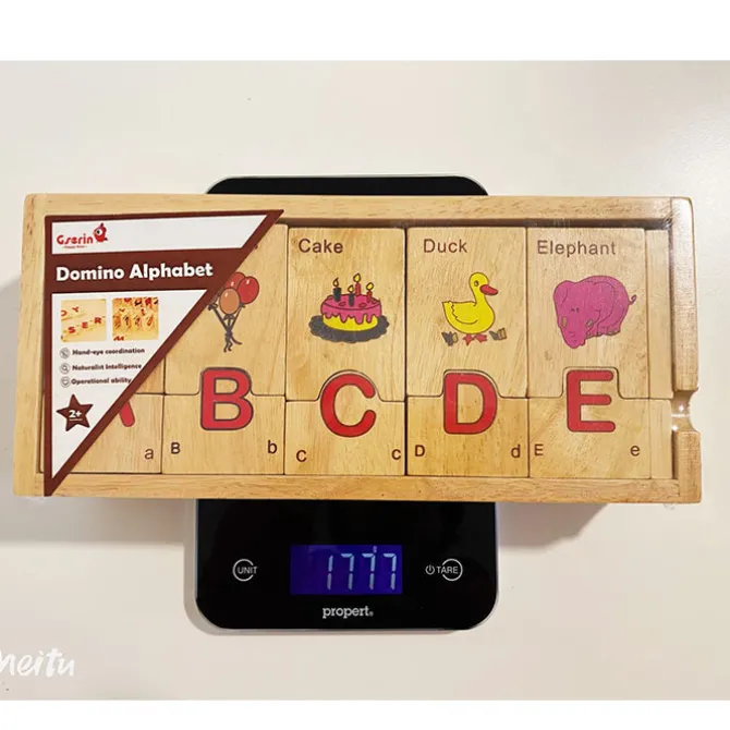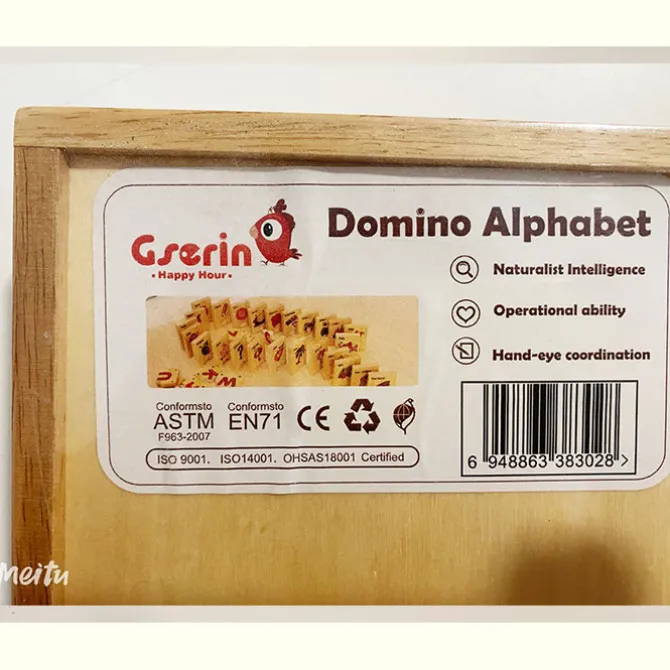 26 letters ,52 wooden pieces sitting in the wooden box.