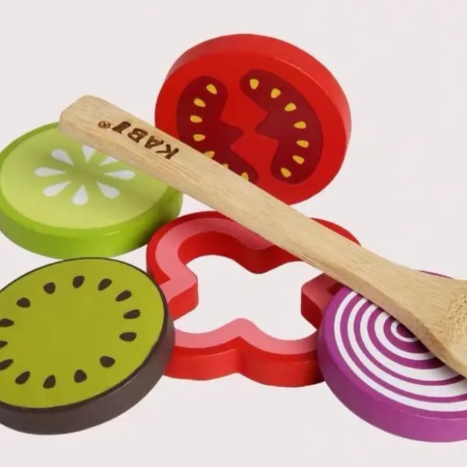 Inspire your budding chef to get cooking and creating. Increase vocabulary and learn the names of fruits and vegetables whilst playing. Sort, stack and describe the different foods. Identify shapes and colours.