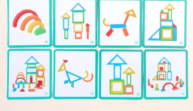 Encourage children to develop their fine motor skills whilst learning to recognise colours and shapes. Cards support children to match and follow instructions to create three dimensional structures.