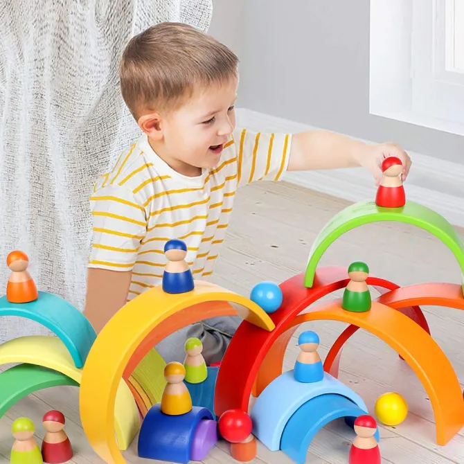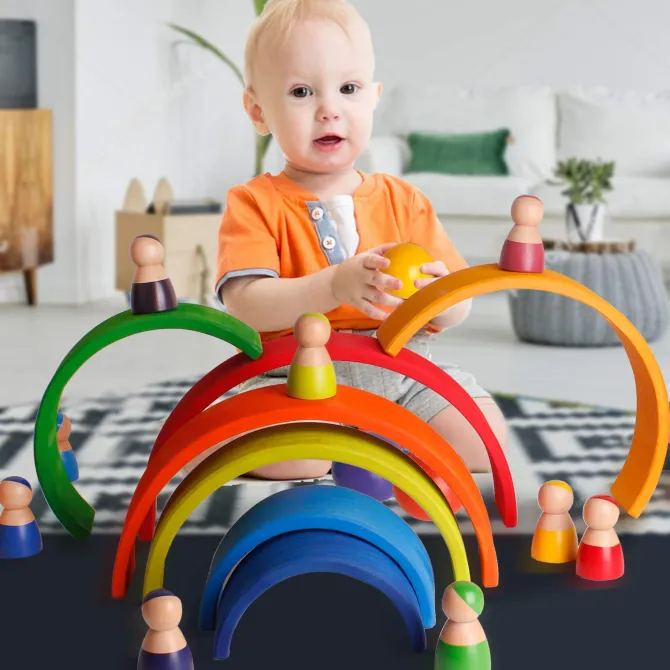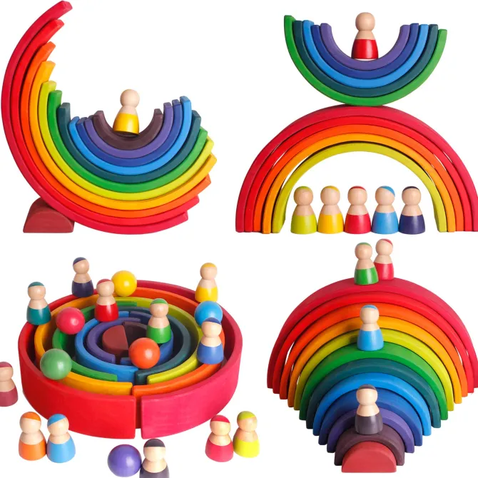 10 Piece Rainbow Wooden Stacking Toy Sunset