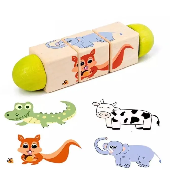 Intuitive to use and attention grabbing for toddlers, these rotating animal puzzles test and develop two-handed grasping and twisting fine motor actions, as well as pattern recognition, animal / food name learning and problem solving.