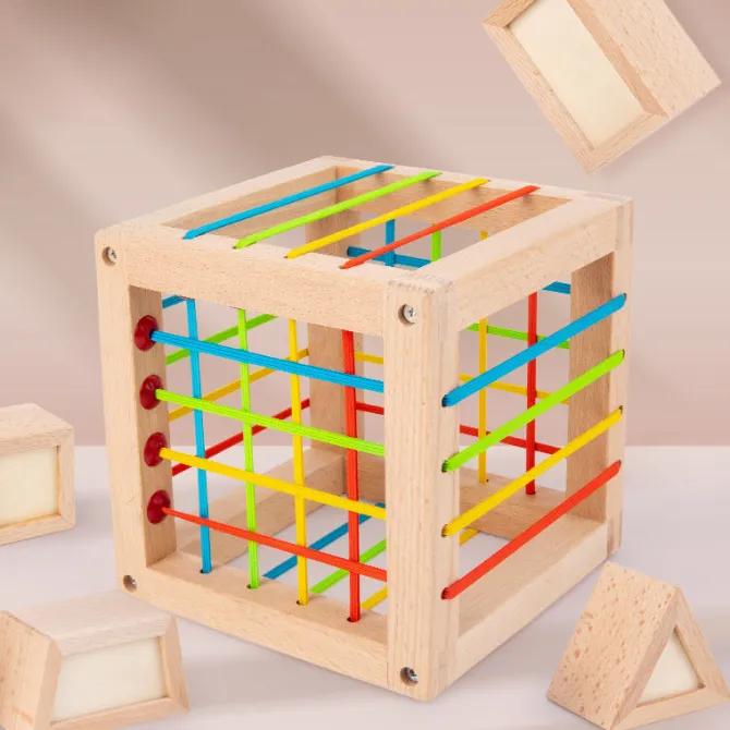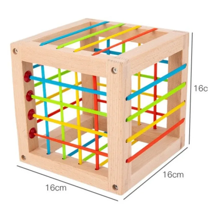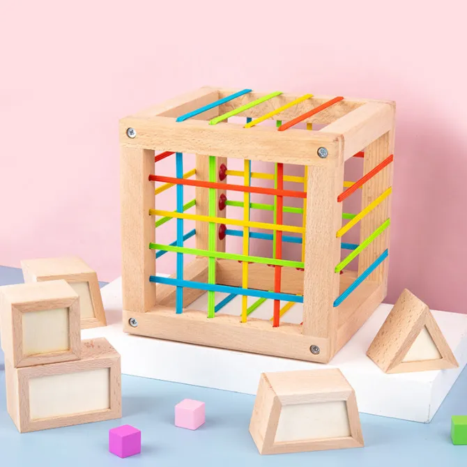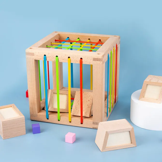 Why use a traditional shape sorter when you can use this new and original sensory box? Not only does it allow children to learn shape names and sort them, it adds sensory stimuli as children have to use their fingers to poke the shapes through the coloured lines and squares.