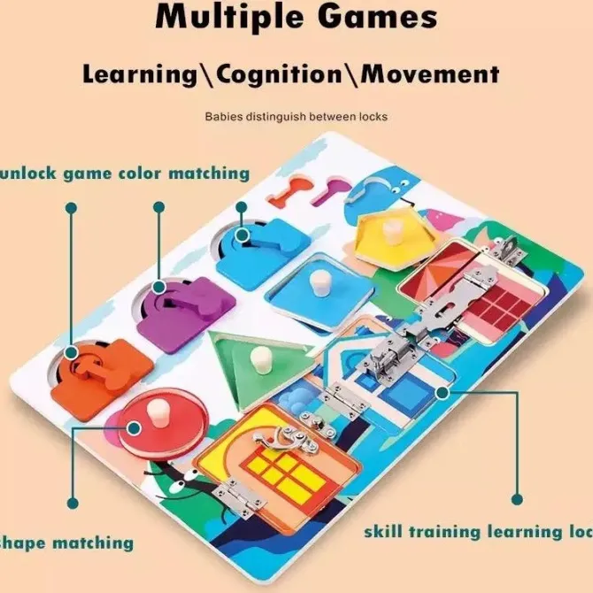 Be the first to review “Wooden Shape Lock Latch Busy Board-Sensory toys” Cancel reply