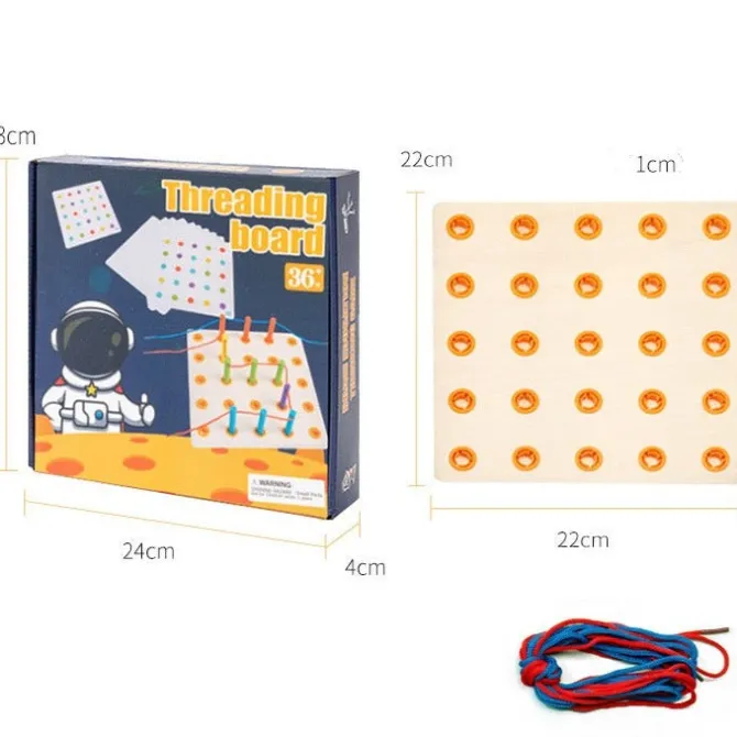 Children will also develop fine motor skills as they place the pegs in the cut out sections and then use the lacing cord provided to weave in and out of the holes in each peg.