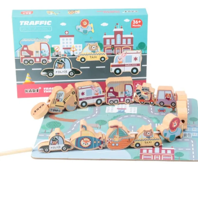 This Wooden Traffic Rope Toy is an educational toy designed to help children develop their fine motor skills as they thread the little vehicles on the rope. Featuring a range of wooden transport vehicles which can be threaded onto a coloured rope and moved up and down, this toy encourages hand-eye coordination and problem-solving. It also helps develop essential fine motor skills.