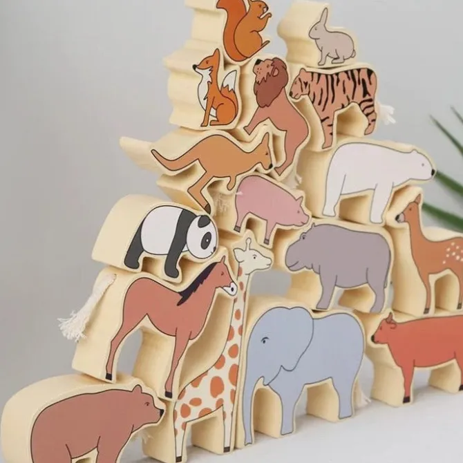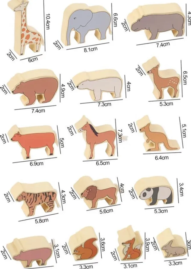 This toy set comprises 15 different wooden animals for kids to play, balance, stack and learn.